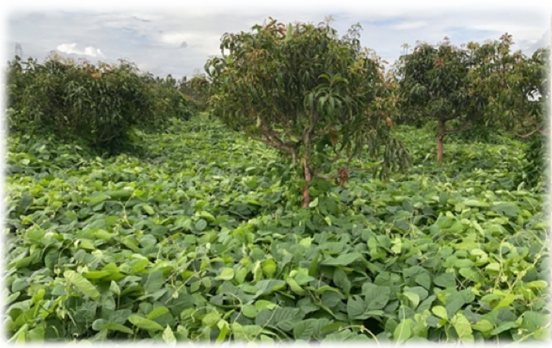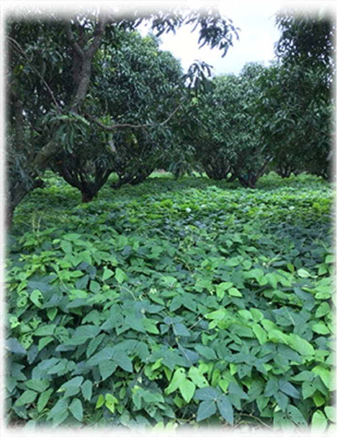 4. Reduction of erosion and water pollution: Intercrops or cover crops in an orchard of mango acts in multiple ways. It does not allow rain drops to hit the ground directly. The roots of the crops on the floor of the orchard hold soil tightly so that the top soil is not carried away by the water. Thus, CH practices in mango orchards lead to a significant reduction in erosion, and thus to a reduction in water pollution.